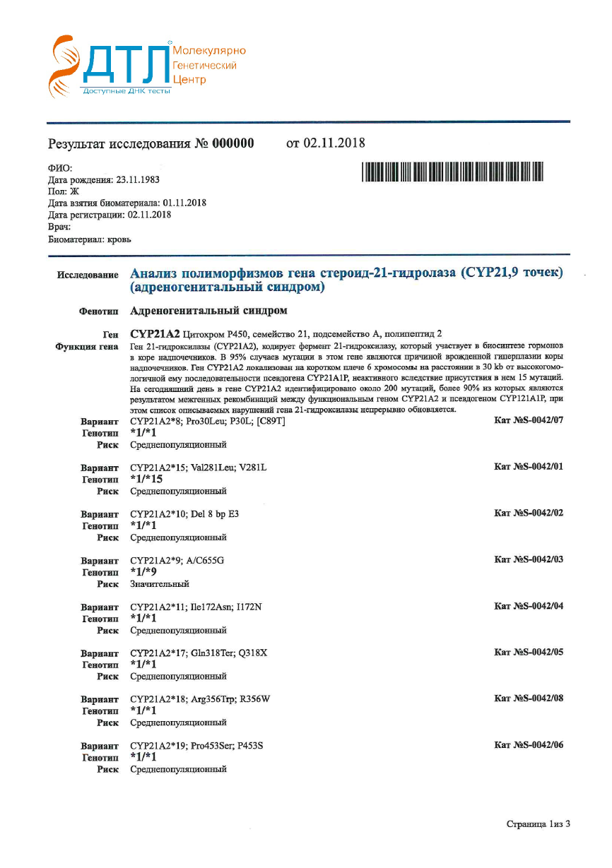 Как сделать тест ДНК на предрасположенность к адреногенитальному синдрому