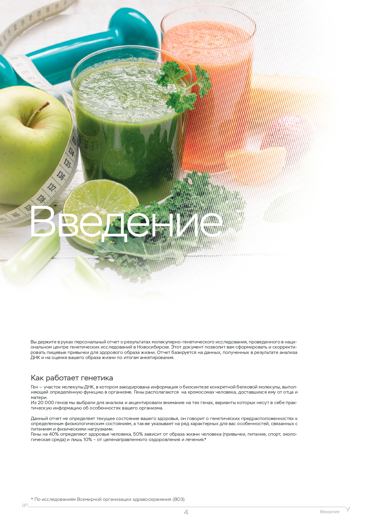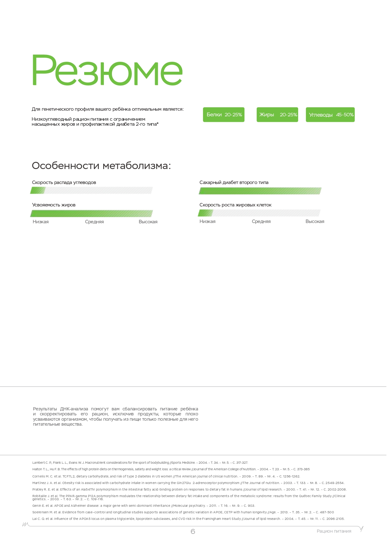 Помните, что помимо физических нагрузок, большую роль играет питание. Вы также можете пройти ДНК-тест на диету, который покажет, каких веществ не хватает в организме, какие организм усваивает лучше, а какие хуже и многое другое.